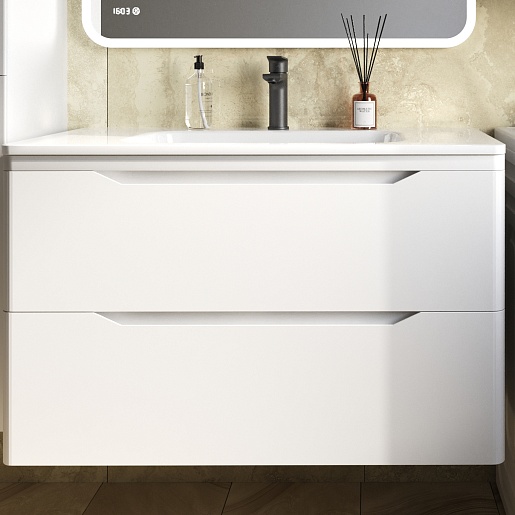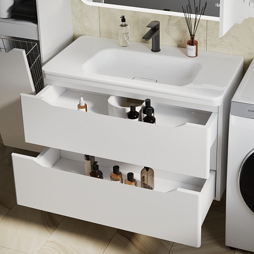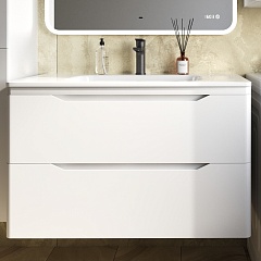 Тумба под раковину Марелла 90 Люкс Plus антискрейтч подвесная белая матовая
