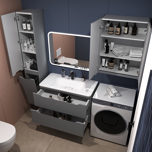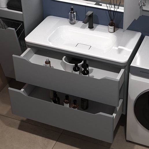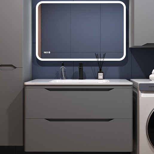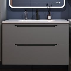 Тумба под раковину Марелла 90 Люкс Plus антискрейтч подвесная серая матовая