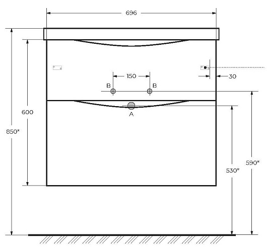 - База под раковину подвесная с двумя выкатными ящиками, с доводчиками, MARINO-700-2C-SO-RN-P