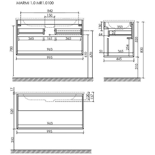 Тумба под раковину Marmi 1.0 100 дуб чарльстон