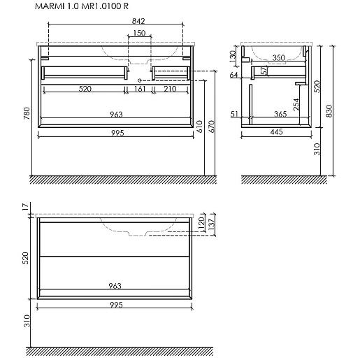 Мебельная раковина Grace 101 R CN7015 белая