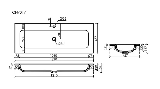 Мебельная раковина Grace 121 CN7017 белая