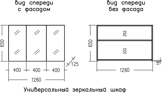 - Размер (ШxВxГ): 1260x650x125 мм.