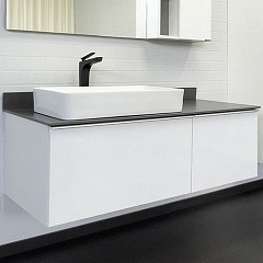 Тумба с раковиной Милан 120 78189 с графитовой столешницей подвесная белая