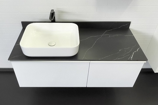Тумба с раковиной Милан 120 T-Y9378 с черной столешницей подвесная белая