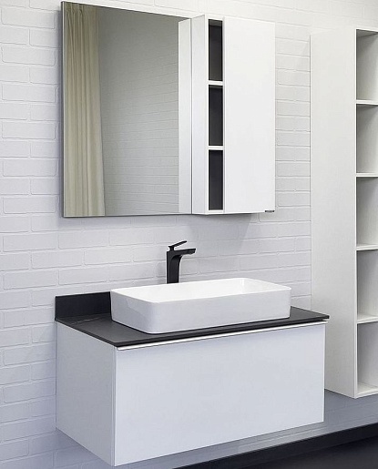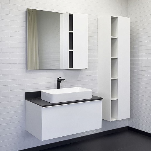 Тумба с раковиной Милан 90 с черной столешницей подвесная белая