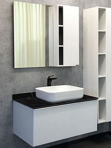 Тумба с раковиной Милан 90 T-Y9378 с черной столешницей подвесная белая