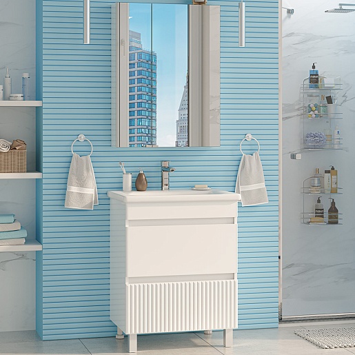В комплекте: тумба, раковина, зеркальный шкаф, ножка (4 шт.).