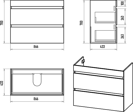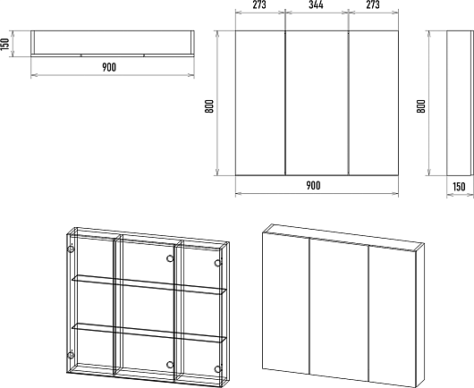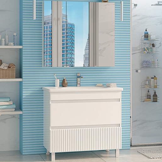 В комплекте: тумба, раковина, зеркальный шкаф, ножка (4 шт.).