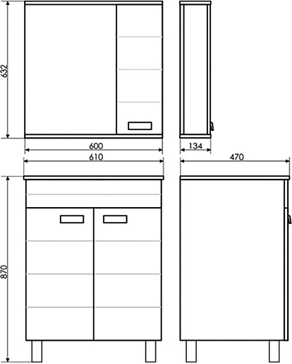 - Размер (ШxВxГ): 600x635x135 мм.