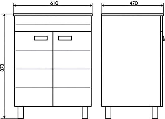 - 2 распашные дверцы.