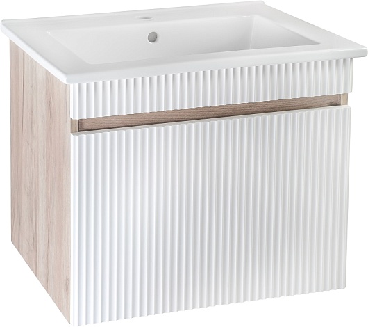 Тумба под раковину Модена 65 подвесная белая/дуб крафт