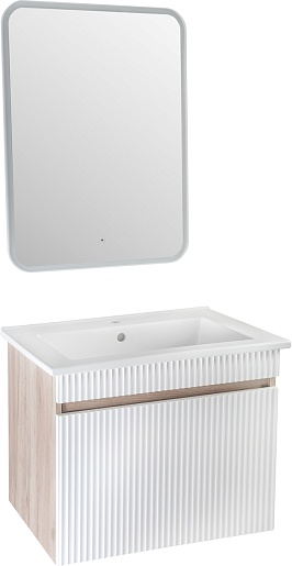 Runo Мебель для ванной Модена 65 подвесная белая/дуб крафт с зеркалом Руан 60