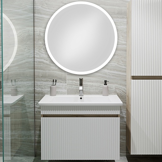 Runo Мебель для ванной Модена 75 подвесная белая/дуб крафт с зеркалом Руан 77