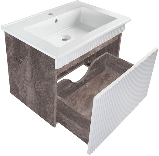 Тумба под раковину Модена 75 подвесная белая/железный камень