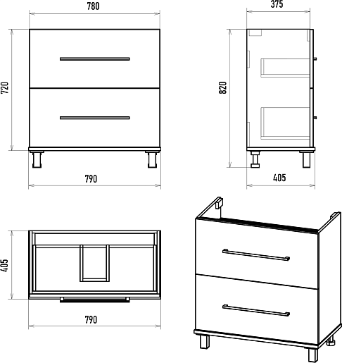 - 2 выдвижных ящика.