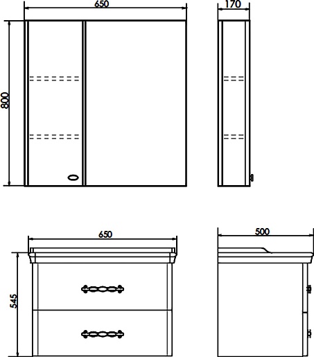 - Материал корпуса/фасада: ЛДСП / МДФ, зеркало.