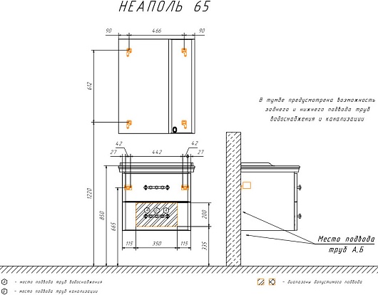 В комплекте: тумба, раковина, зеркальный шкаф, крепеж.