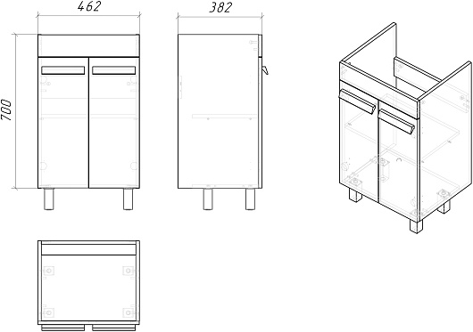 - 2 распашные дверцы.