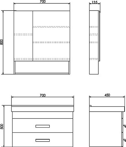 - Размер (ШxВxГ): 700x800x135 мм.