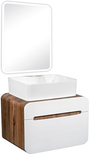 Тумба под раковину Ницца 60 подвесная белая/темное дерево