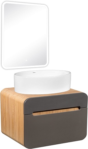 Runo Мебель для ванной Ницца 60 Ovale подвесная графит/дуб натуральный