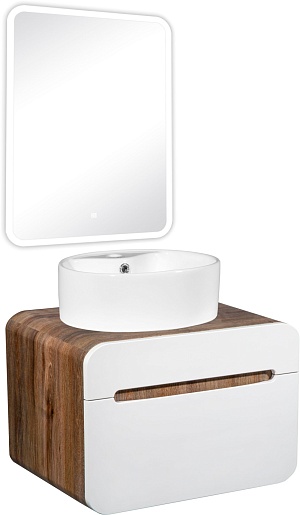 Runo Мебель для ванной Ницца 60 Sole подвесная белая/темное дерево