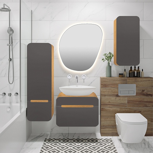 Тумба под раковину Ницца 60 подвесная графит/дуб натуральный