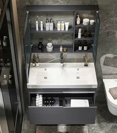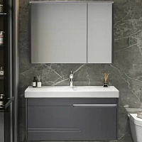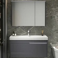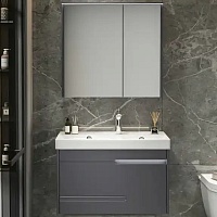 В комплекте: тумба, раковина, донный клапан (2 шт.), зеркальный шкаф, сифон с фильтром-затвором (2 шт.), У-образный сливной шланг, вилка для подключения подсветки, крепеж.