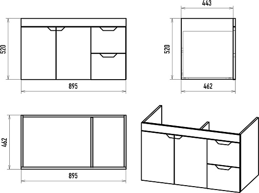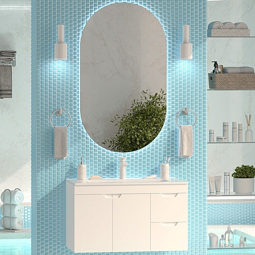 Тумба под раковину Оптима 90 подвесная белая матовая