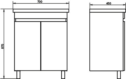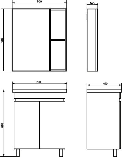 В комплекте: тумба, раковина, зеркальный шкаф, комплект ножек.