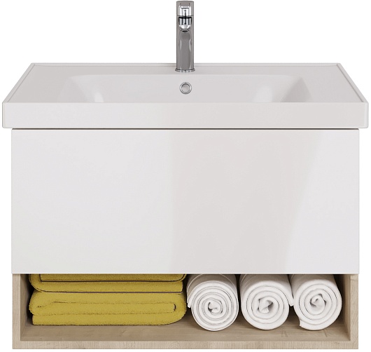 Тумба под раковину Perfecto 90 подвесная белая/дуб эврика