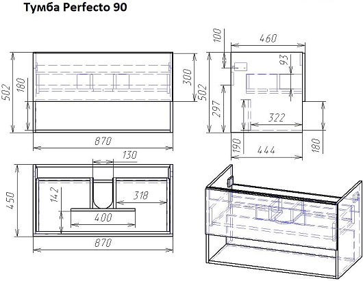 Подвесная тумба с раковиной Dreja Perfecto 90 - арт. 99.0813 / 641617.