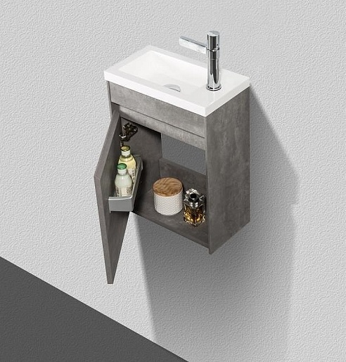 - База под раковину PIETRA MINI-460-1A-SO-SCM-L подвесная с одной дверкой, левостороннее исполнение.