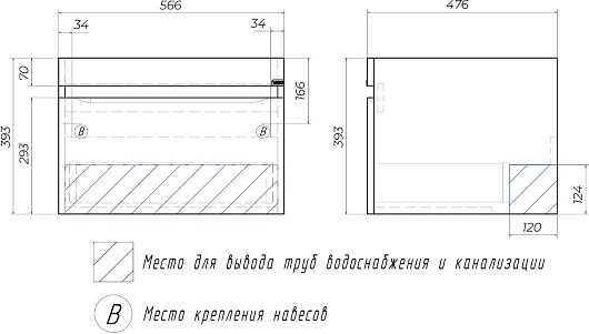 - Раковина из литьевого мрамора с крылом с левой стороны под установку стиральной машины.