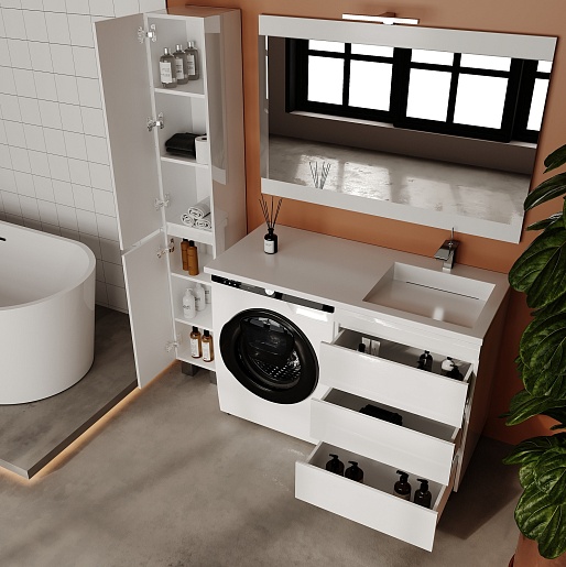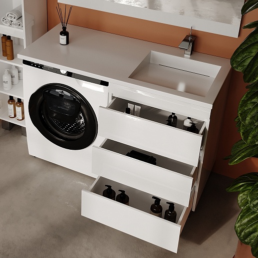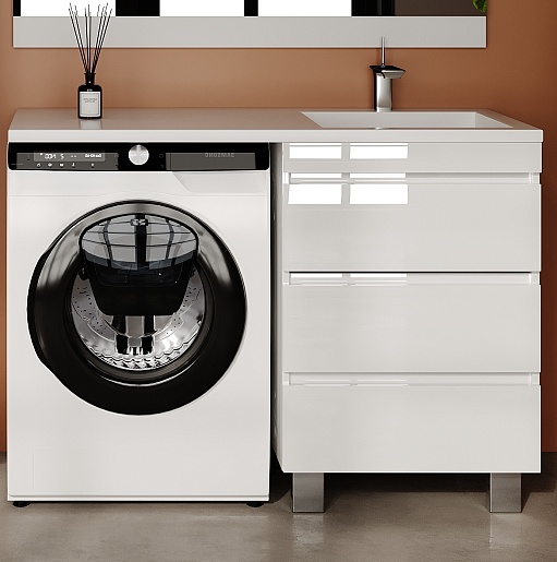 Style Line Мебель для ванной под стиральную машину Леон 120 R 3 ящика Люкс Plus белая