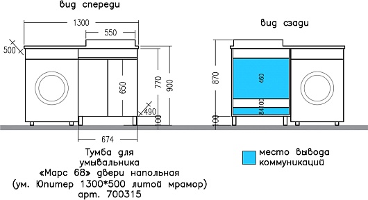 Напольная тумба с раковиной под стиральную машину Санта Марс 130 R - арт. 700315 / 900136 / 900123.