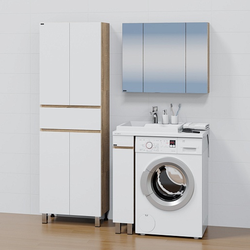 СанТа Мебель для ванной под стиральную машину Марс 80 L белая/янтарное дерево