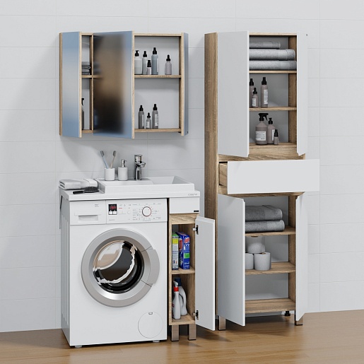 СанТа Мебель для ванной под стиральную машину Марс 80 R белая/янтарное дерево