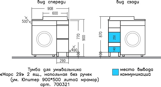 Напольная тумба с раковиной под стиральную машину Санта Марс 90 L - арт. 700321 / 900128 / 900122.