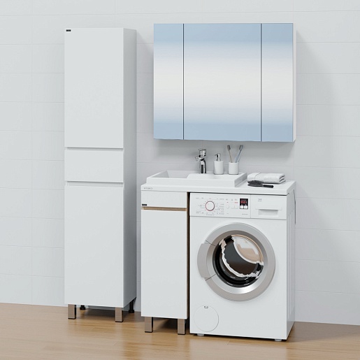 СанТа Мебель для ванной под стиральную машину Марс 90 L белая/янтарное дерево