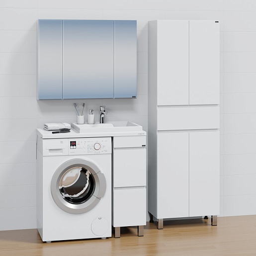 СанТа Мебель для ванной под стиральную машину Марс 90 R 2 ящика с зеркальным шкафом Стандарт 90 белая/светлое дерево