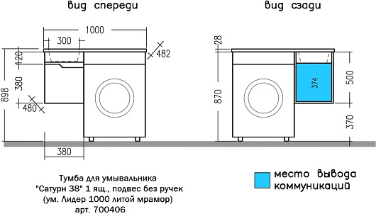 Подвесная тумба с раковиной под стиральную машину Санта Сатурн 100 L - арт. 700406 / 900106N / 900123.