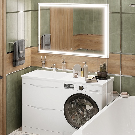 Водолей Мебель для ванной под стиральную машину Смайл 130 L белая