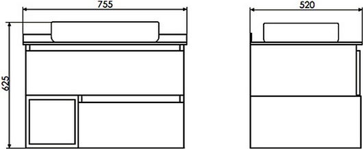 - 2 выдвижных ящика, 1 открытая ниша.