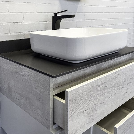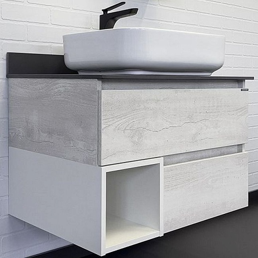 Тумба с раковиной Прага 75 T-Y9378 с графитовой столешницей подвесная дуб белый