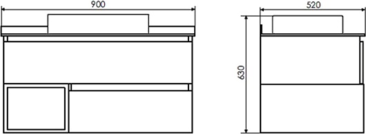 - 2 выдвижных ящика, 1 открытая ниша.