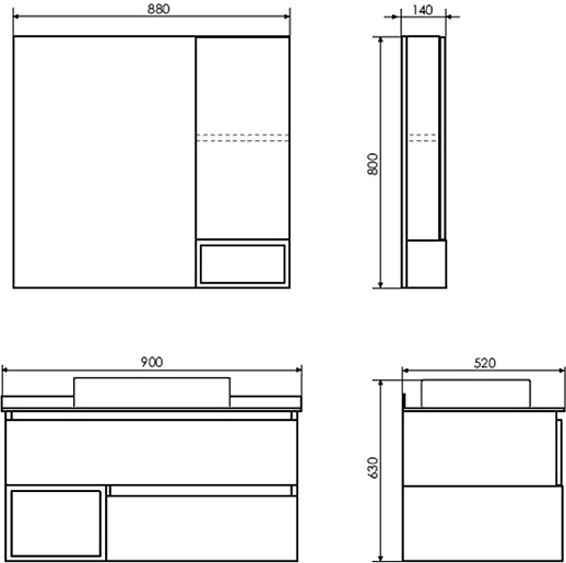 - Размер (ШxВxГ): 880x800x140 мм.