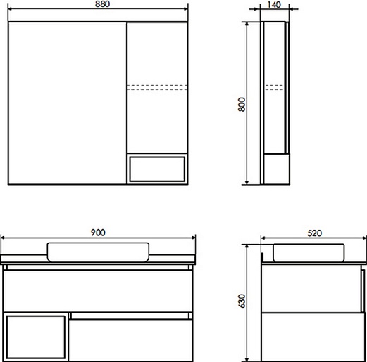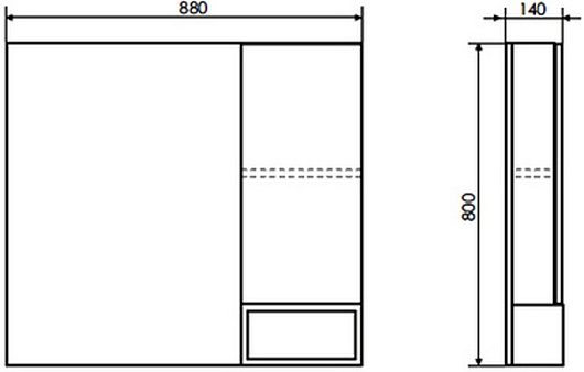 - Размер (ШxВxГ): 880x800x140 мм.