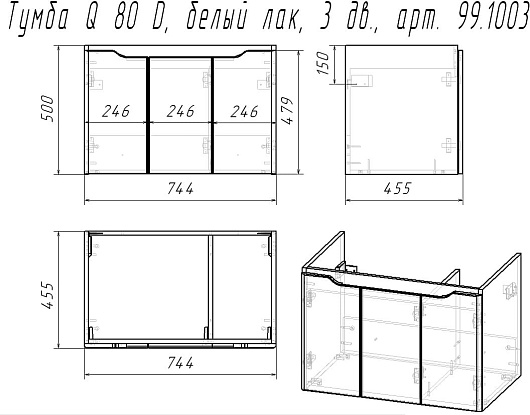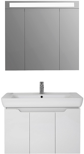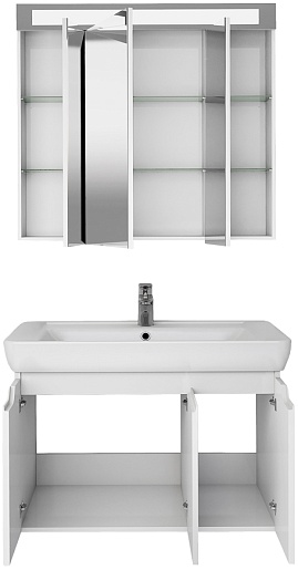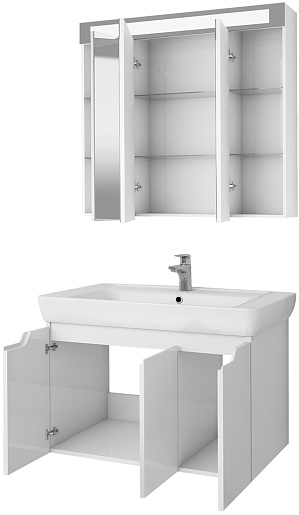 В комплекте: тумба, раковина, зеркальный шкаф, крепеж.